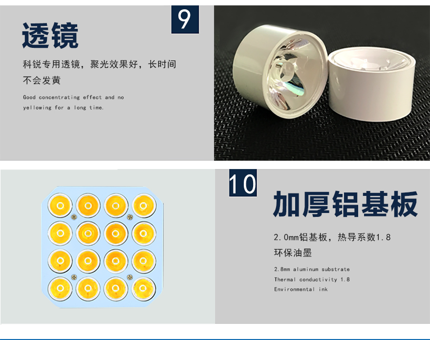 ★可選用不同角度(10?、25?、40?、60?、90?)的聚光透鏡集中有效光源,減少發(fā)散光損失,有效減少光污染;