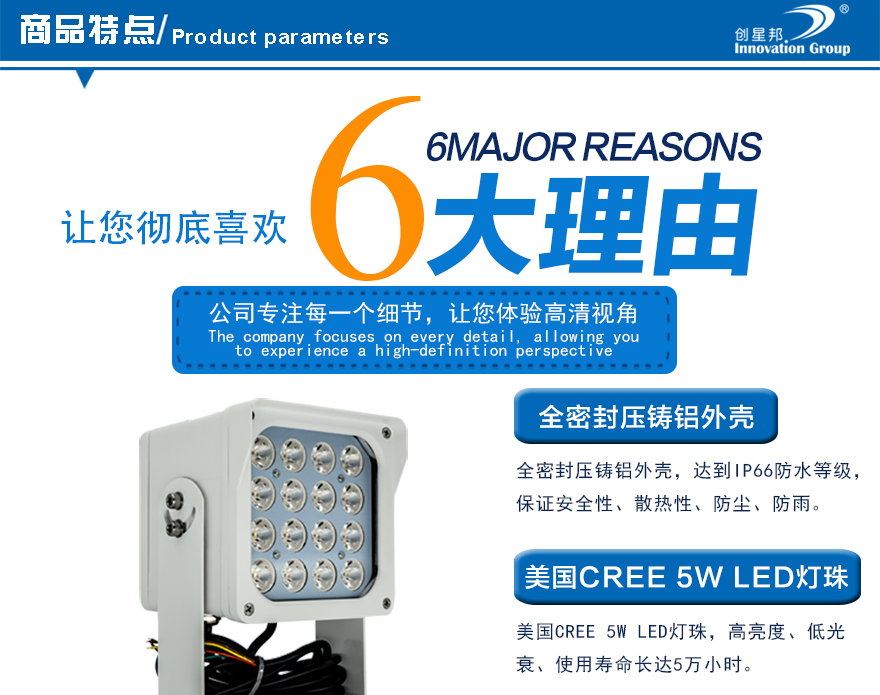 ★功率可調(diào),根據(jù)現(xiàn)場光照環(huán)境調(diào)節(jié)燈光亮度,在滿足圖像效果的前提下盡量減少光功率,節(jié)能環(huán)保;