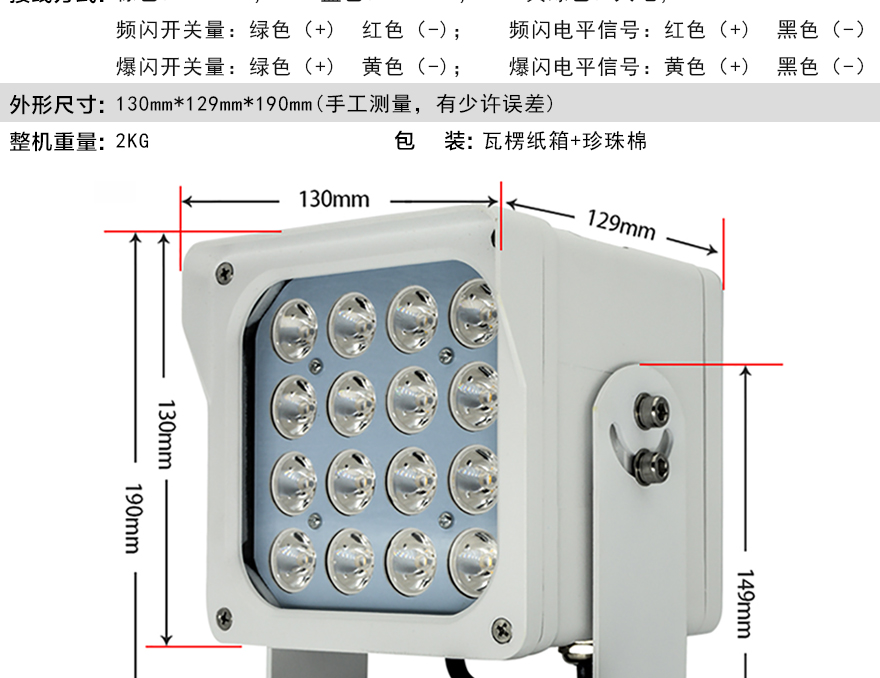★發(fā)光脈沖寬度可調(diào),適應(yīng)各種攝像機的曝光時間;